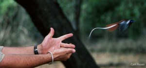 In a separate study we examined the relationship between song attributes and habitat density. It has been hypothesized that acoustic properties of song should be correlated with the habitat in which they are broadcast, and neighbouring individuals should sing similar songs because they share the same local acoustic environment. We tested these predictions by investigating associations between habitat characteristics and song attributes in the Madagascar paradise flycatcher. We also examined whether there were local song dialects within the population. We found individuals on territories with denser habitats sang longer songs at lower frequencies. We also found that the distribution of dialects within the study site was strongly associated with variation in understorey cover. This suggests habitat variation contributes to maintaining variation in song structure in this species. A sample of Madagascar paradise flycatcher song can be heard at the Macaulay Library, Cornell Lab of Ornithology.